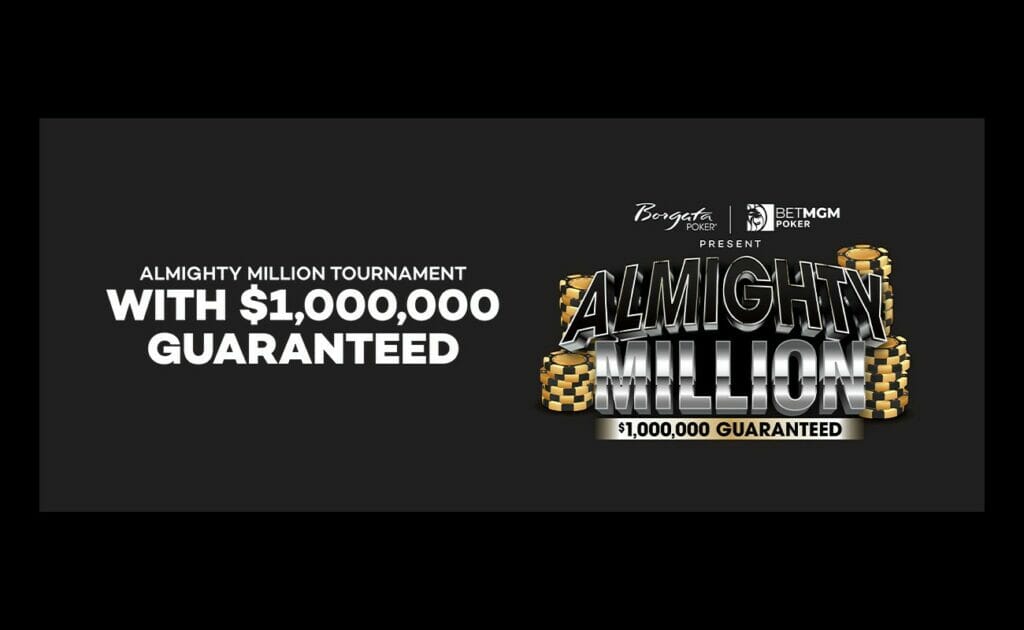 ATLANTIC CITY, NJ – (March 8, 2023) – Borgata Poker, in partnership with BetMGM Poker, has announced the next million-dollar venture, Almighty Million. High-stakes poker came back to Borgata with “The Return” in January where it crowned a $1 million winner. Almighty Million assures another week of big bets and even bigger pots in this No Limit Hold’Em Tournament. Day 1 flights begin on Sunday, May 7 with the final table taking place on Saturday, May 13.