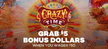 Wager $50 on our featured game, Crazy Time, and get $5 Bonus Dollars to play Live Blackjack! Earn a bonus each day during the promo period.